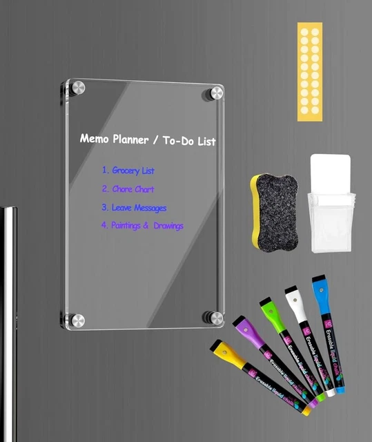 ACRYLIC MAGNETIC DRY Erase Board and Calendar for Fridge Clear Set of