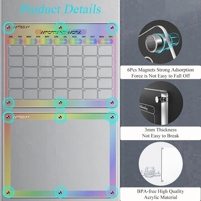 Amazon com : Aosite Acrylic Magnetic Calendar for Fridge 16 quot x12