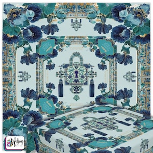 Mahjong Gaming Mat CHINOISERIE BLEU **RULES EDITION** Classic Prep