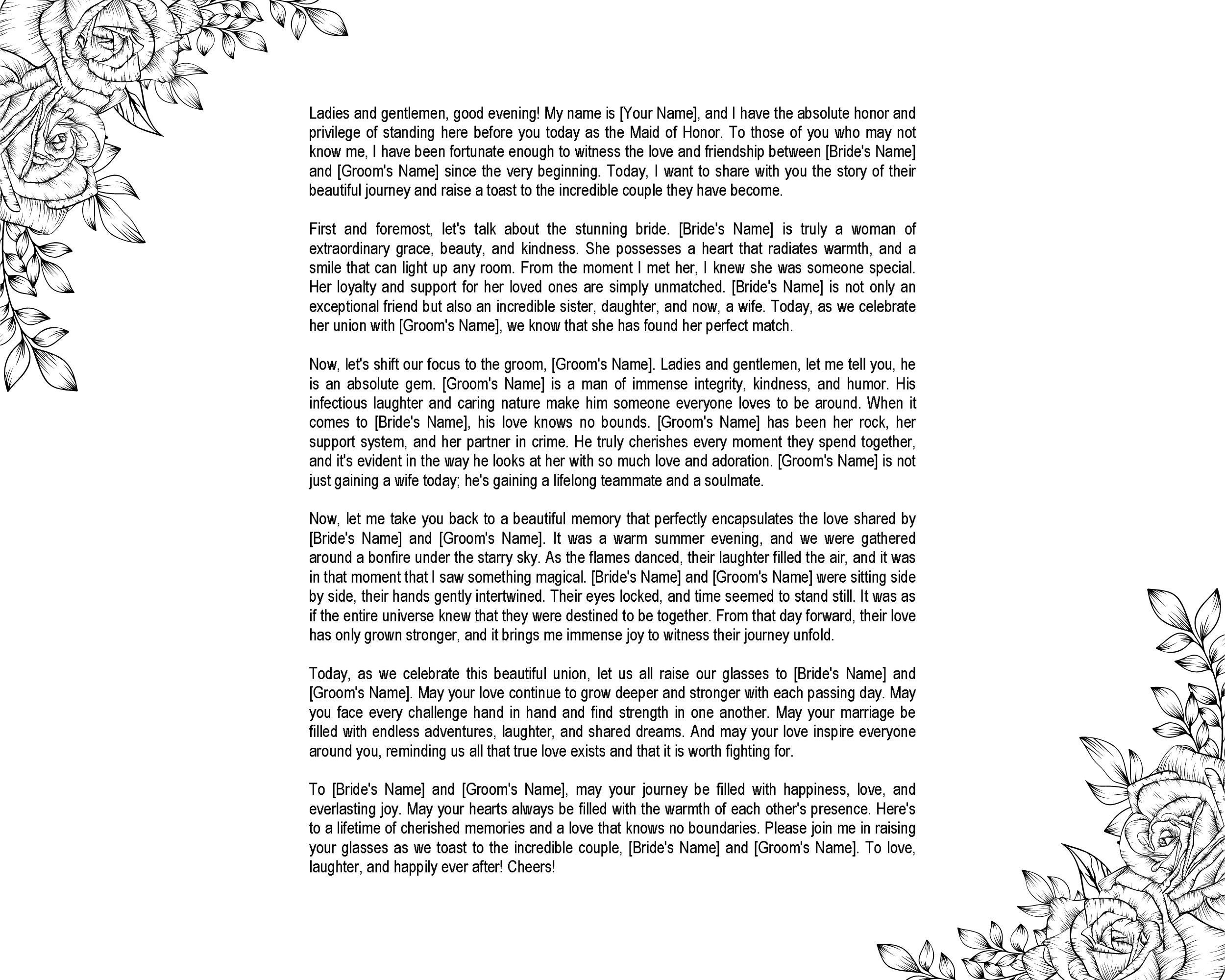 Maid of Honor Speech Template Wedding Toast MOH Bridesmaid Speech