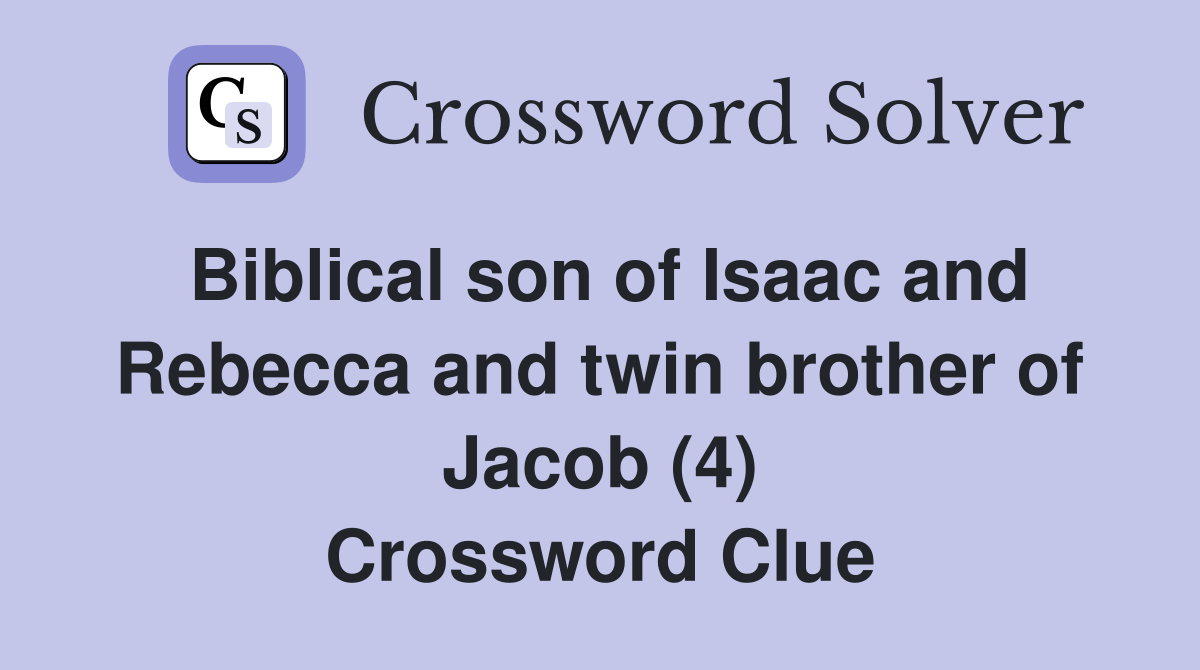 Biblical son of Isaac and Rebecca and twin brother of Jacob (4