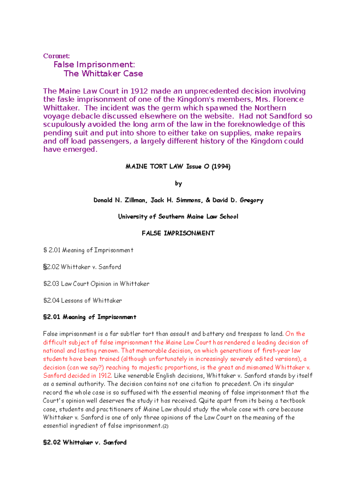 Interesting Fault facts Coronet: False Imprisonment: The Whittaker