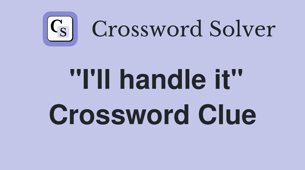 #39 #39 I #39 ll handle it #39 #39 Crossword Clue Answers Crossword Solver