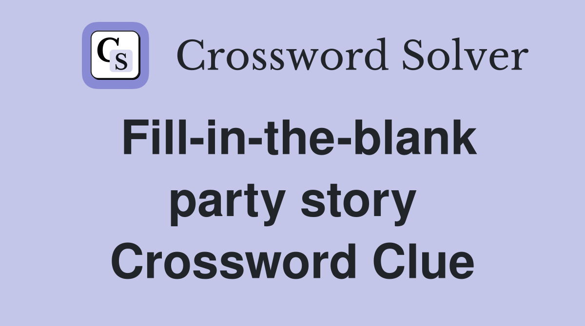 Fill in the blank party story Crossword Clue Answers Crossword Solver