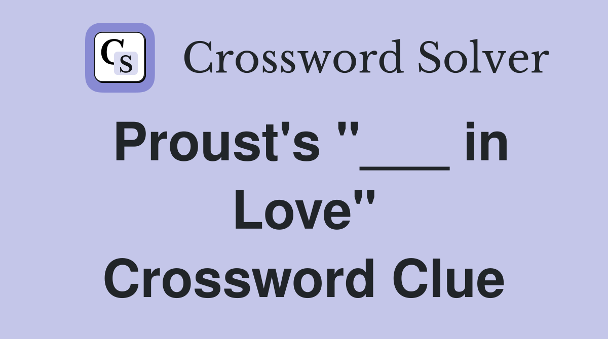 Proust #39 s quot in Love quot Crossword Clue Answers Crossword Solver