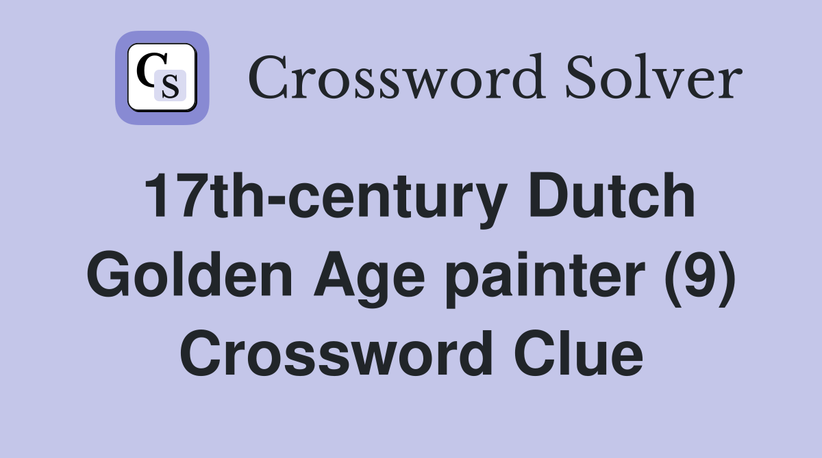 17th century Dutch Golden Age painter (9) Crossword Clue Answers