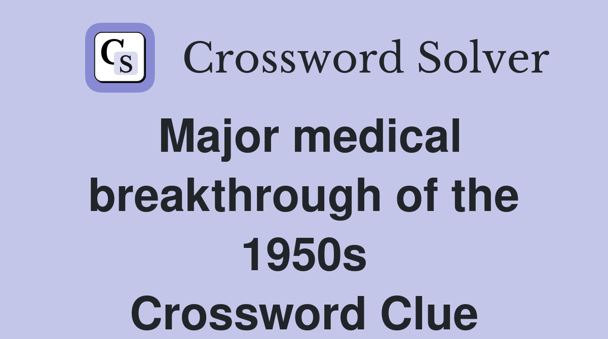 Major medical breakthrough of the 1950s Crossword Clue Answers