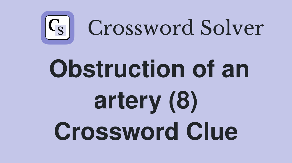 Obstruction of an artery (8) Crossword Clue Answers Crossword Solver