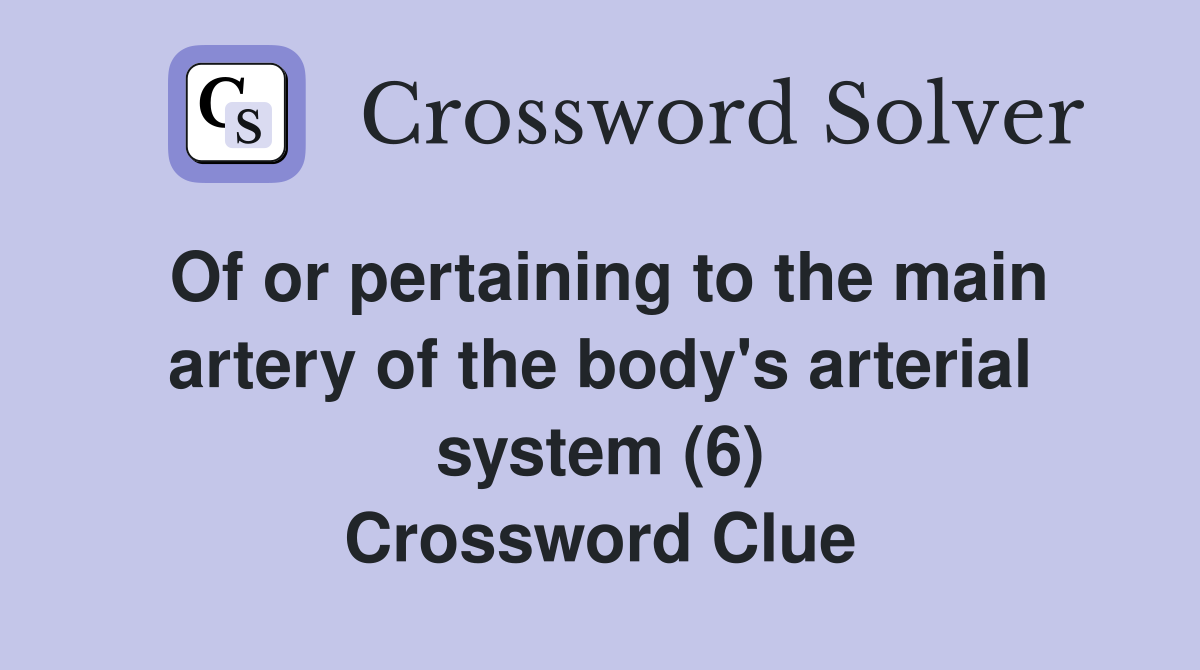 Main artery crossword clue TheSunCrosswordAnswers co uk