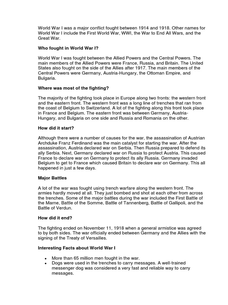 World War I Was A Major Conflict Fought Between 1914 and 1918 PDF