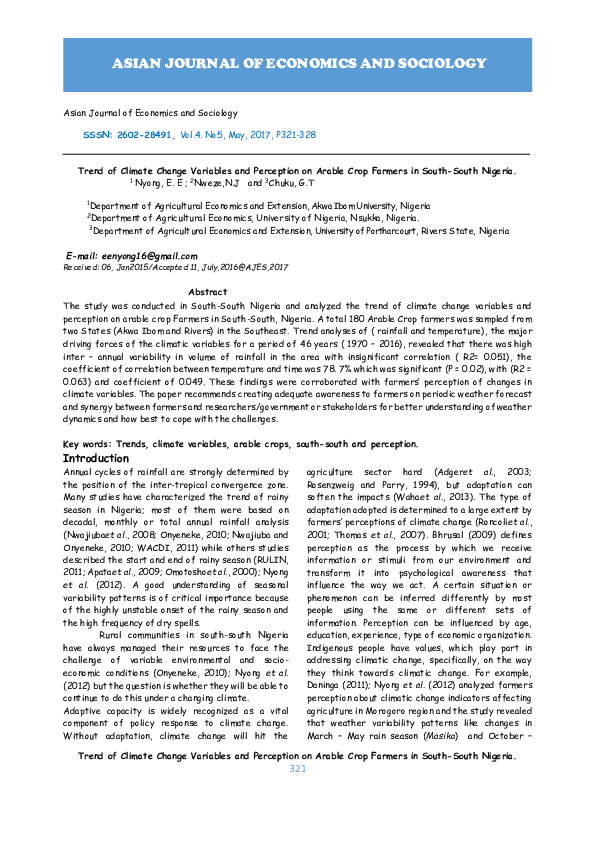 (PDF) Trend of Climate Change Variables and Perception on Arable Crop
