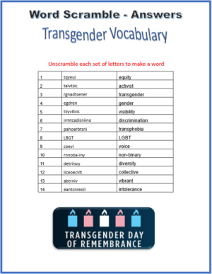 Transgender Day of Remembrance crossword puzzle by Mind Development For
