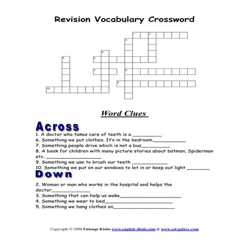Revision vocabulary crossword PDF