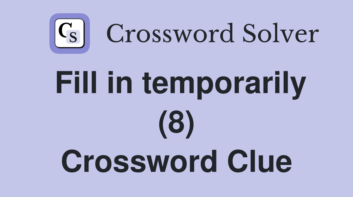 Fill in temporarily (8) Crossword Clue Answers Crossword Solver