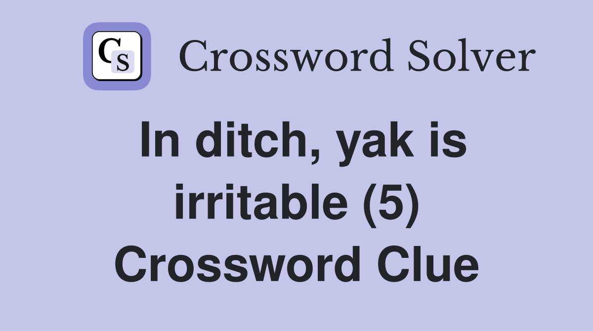 In ditch yak is irritable (5) Crossword Clue Answers Crossword Solver