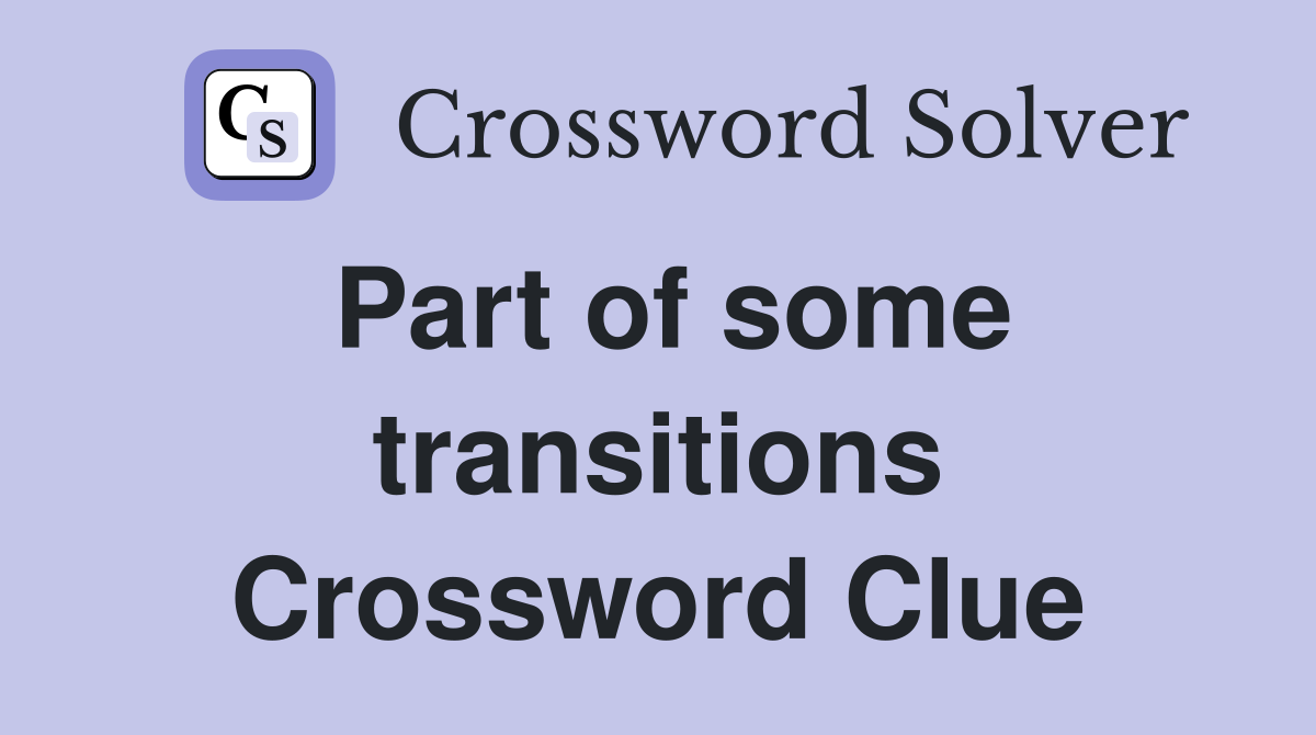 Part of some transitions Crossword Clue Answers Crossword Solver