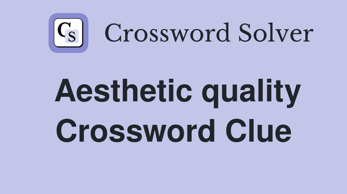 Aesthetic quality Crossword Clue Answers Crossword Solver