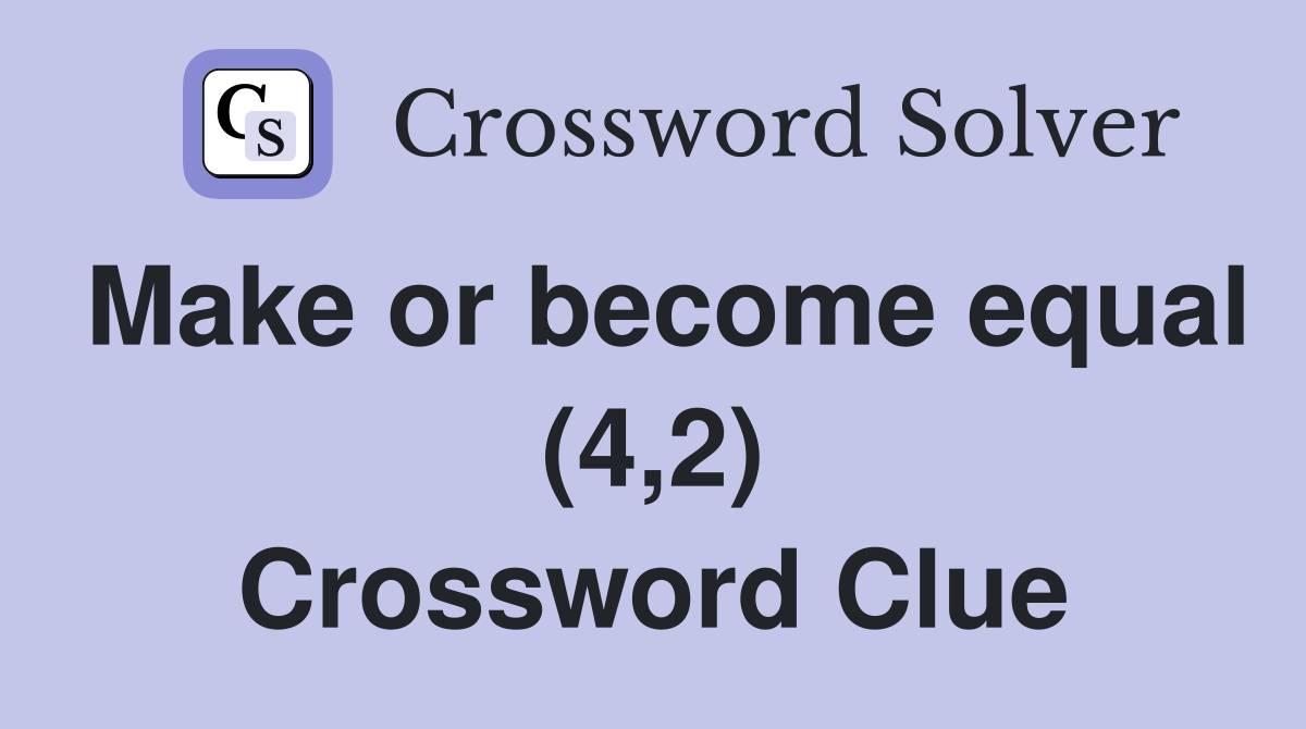 Make or become equal (4 2) Crossword Clue Answers Crossword Solver