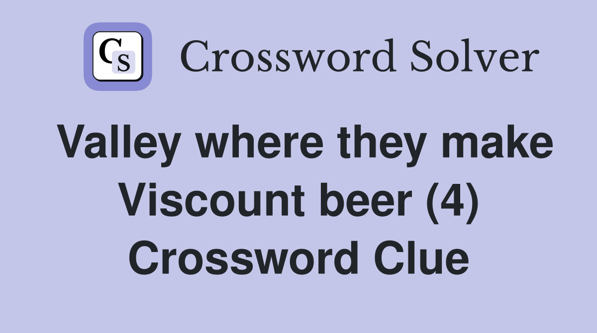 Valley where they make Viscount beer (4) Crossword Clue Answers