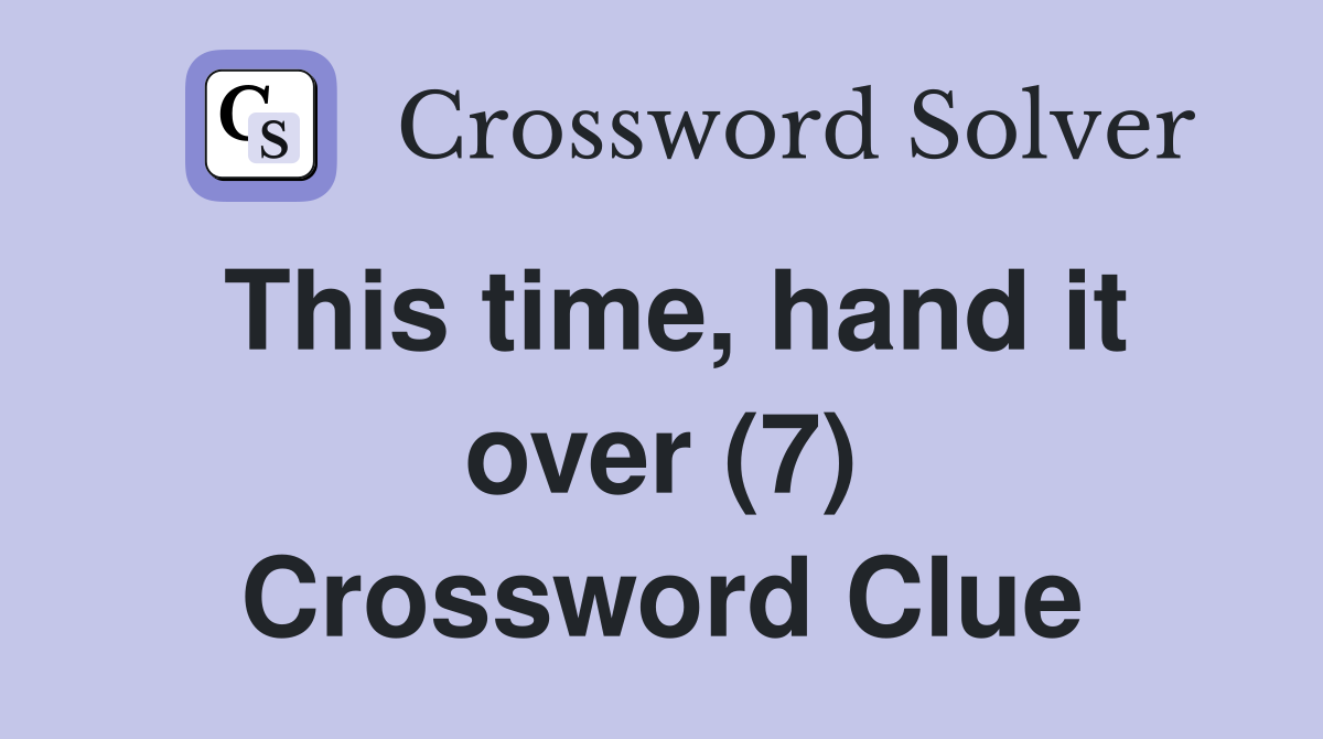 This time hand it over (7) Crossword Clue Answers Crossword Solver