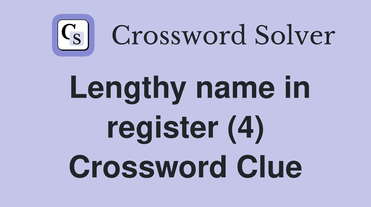 Lengthy name in register (4) Crossword Clue Answers Crossword Solver