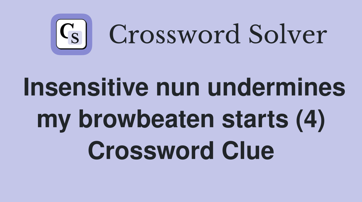 Insensitive nun undermines my browbeaten starts (4) Crossword Clue