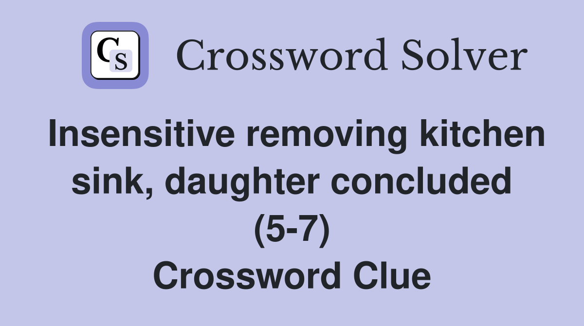 Insensitive removing kitchen sink daughter concluded (5 7) Crossword
