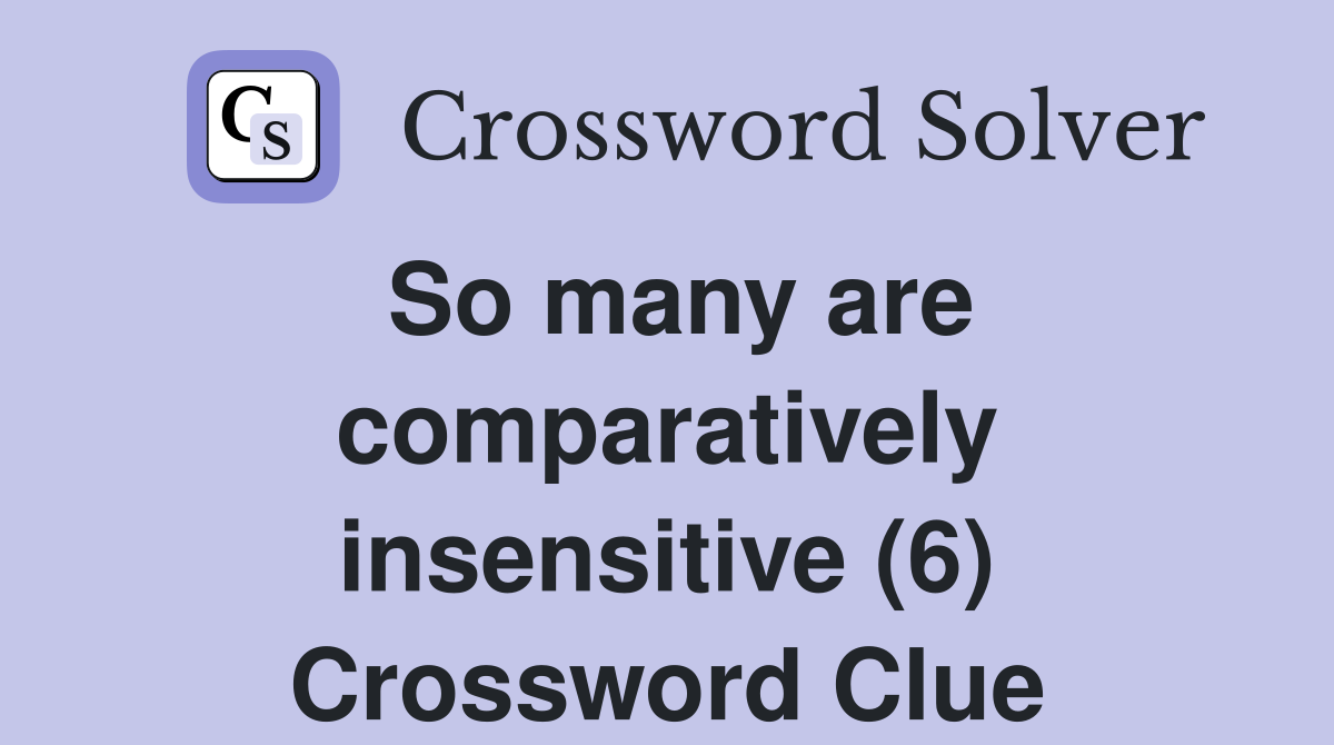 So many are comparatively insensitive (6) Crossword Clue Answers