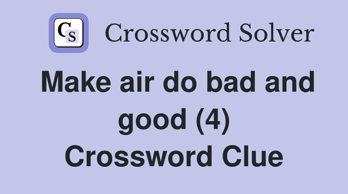 Make air do bad and good (4) Crossword Clue Answers Crossword Solver