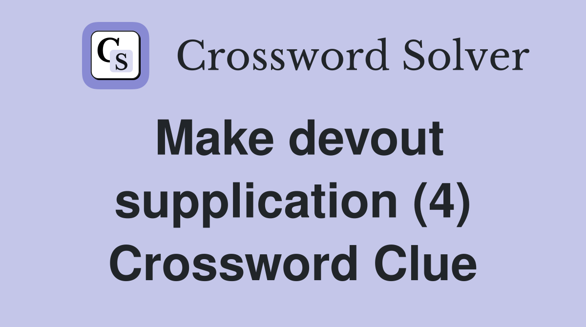 Make devout supplication (4) Crossword Clue Answers Crossword Solver