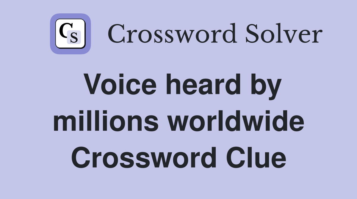 Voice heard by millions worldwide Crossword Clue Answers Crossword