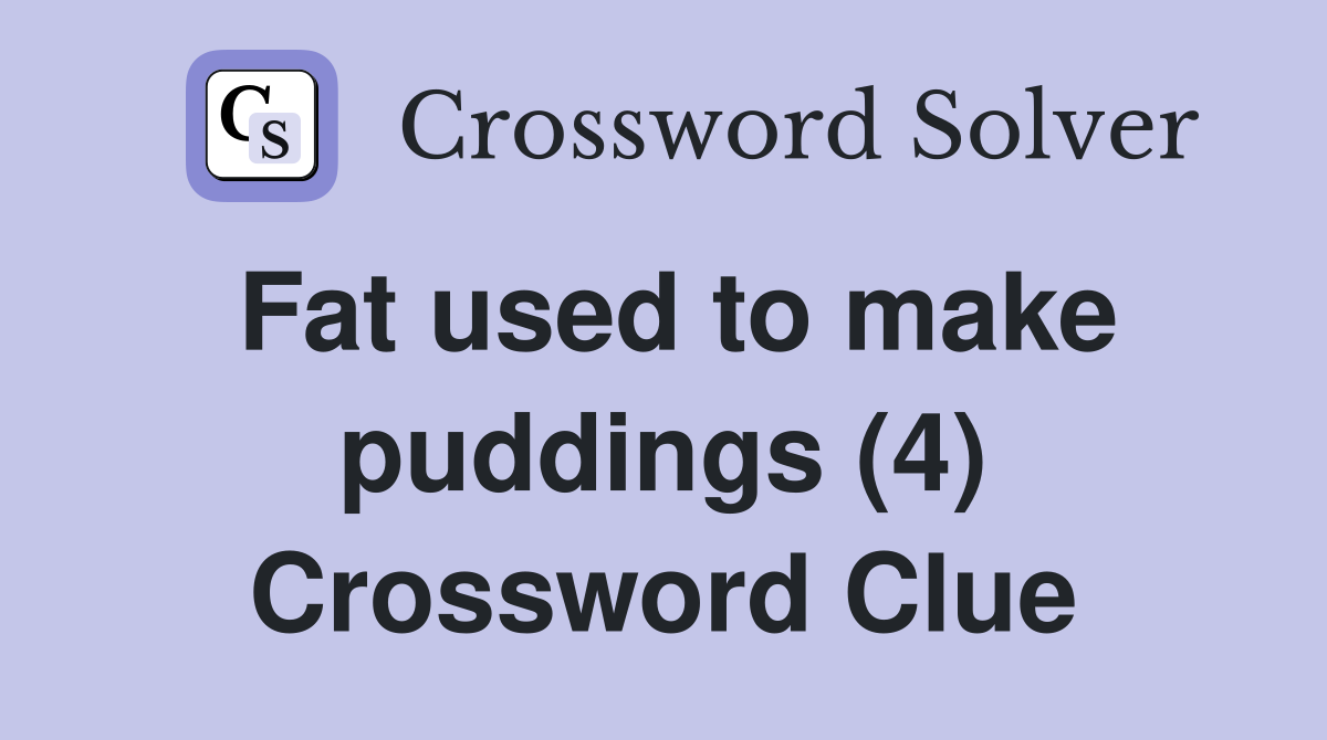 Fat used to make puddings (4) Crossword Clue Answers Crossword Solver