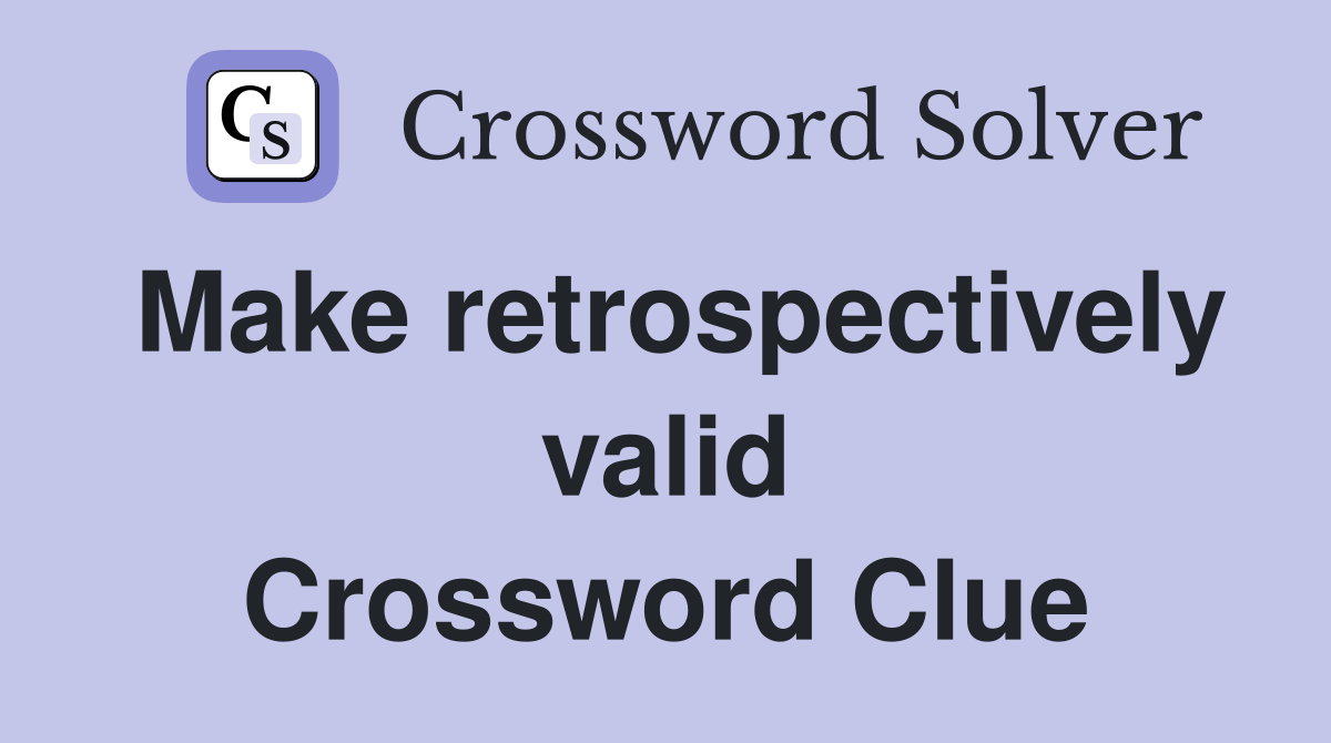 Make retrospectively valid Crossword Clue Answers Crossword Solver