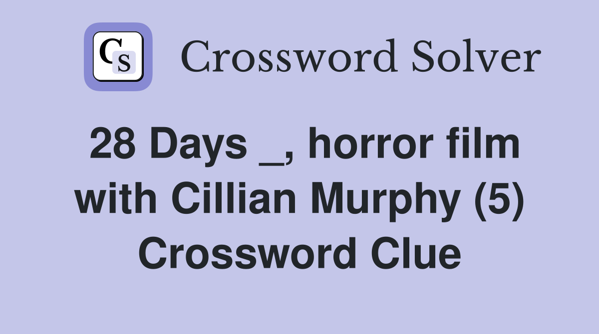 28 Days horror film with Cillian Murphy (5) Crossword Clue Answers