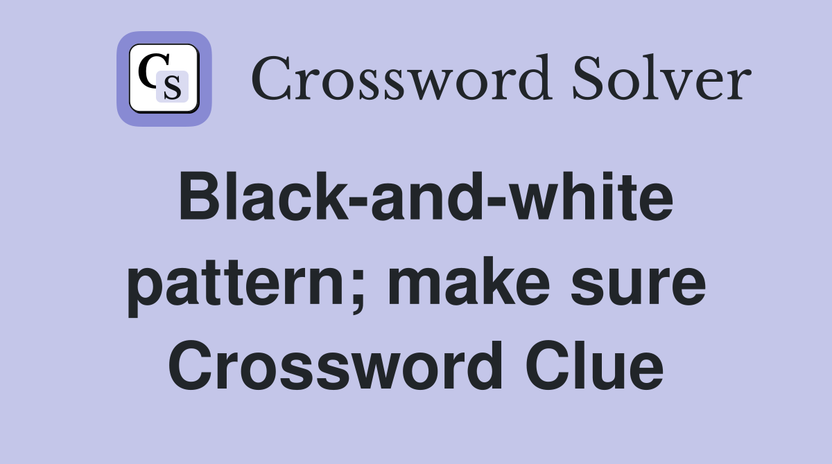 Black and white pattern make sure Crossword Clue Answers Crossword