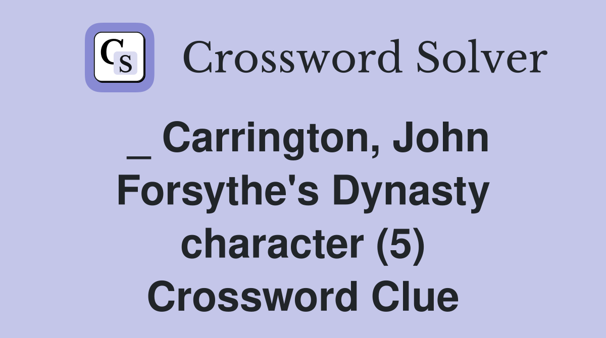 Carrington John Forsythe #39 s Dynasty character (5) Crossword Clue