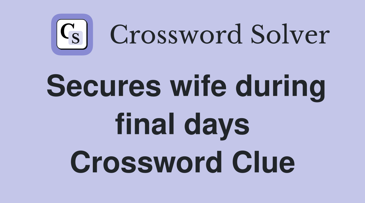 Secures wife during final days Crossword Clue Answers Crossword Solver
