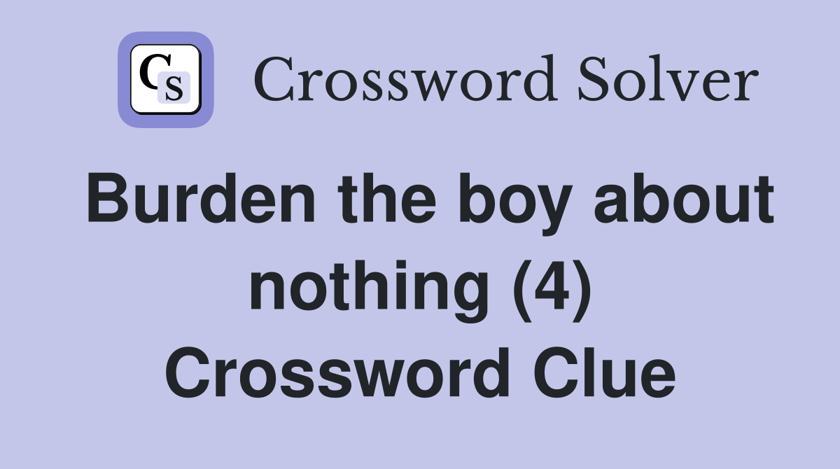 Burden the boy about nothing (4) Crossword Clue Answers Crossword