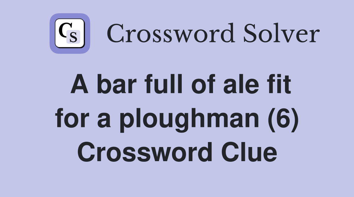 A bar full of ale fit for a ploughman (6) Crossword Clue Answers