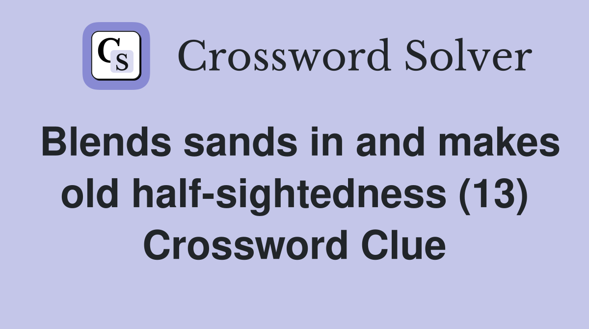Blends sands in and makes old half sightedness (13) Crossword Clue