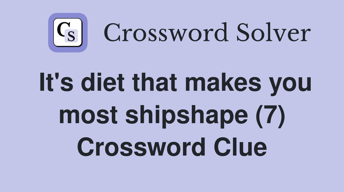 It #39 s diet that makes you most shipshape (7) Crossword Clue Answers