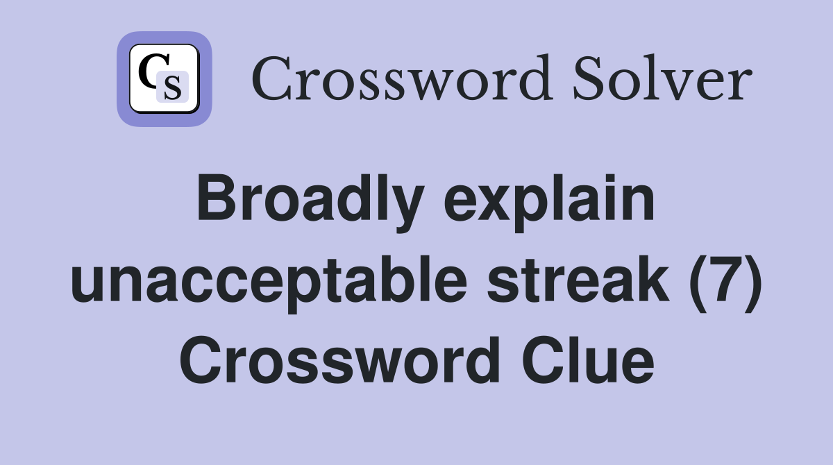 Broadly explain unacceptable streak (7) Crossword Clue Answers