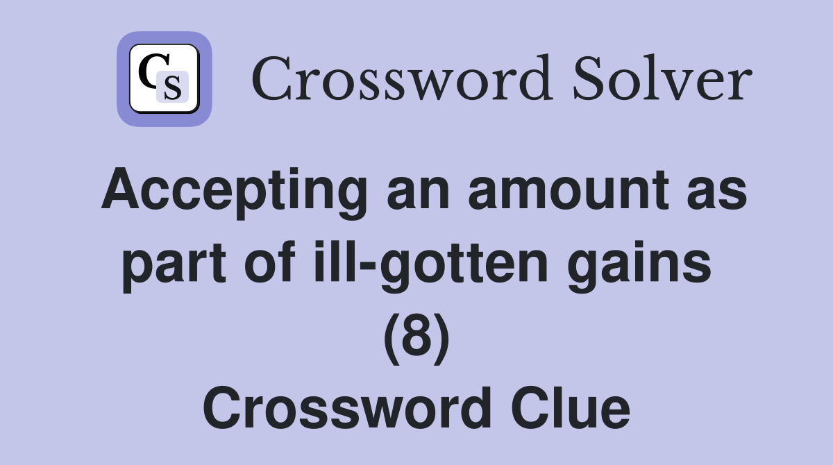 Accepting an amount as part of ill gotten gains (8) Crossword Clue
