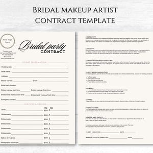 Makeup Artist Contract Editable Template MUA Agreement Makeup