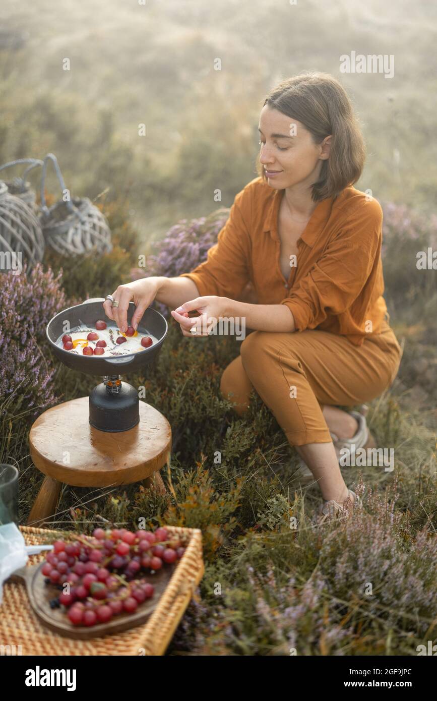 Woman travel making breakfast hi res stock photography and images Alamy