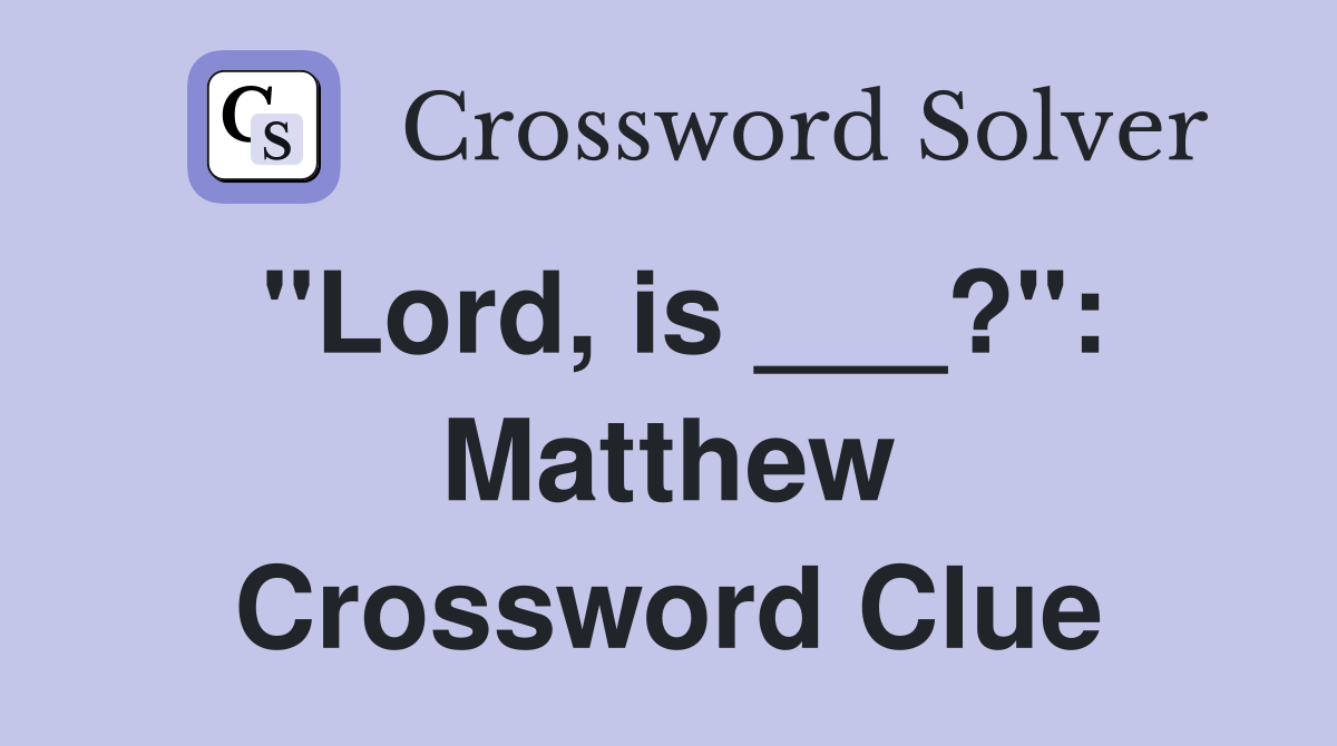 quot Lord is ? quot : Matthew Crossword Clue Answers Crossword Solver