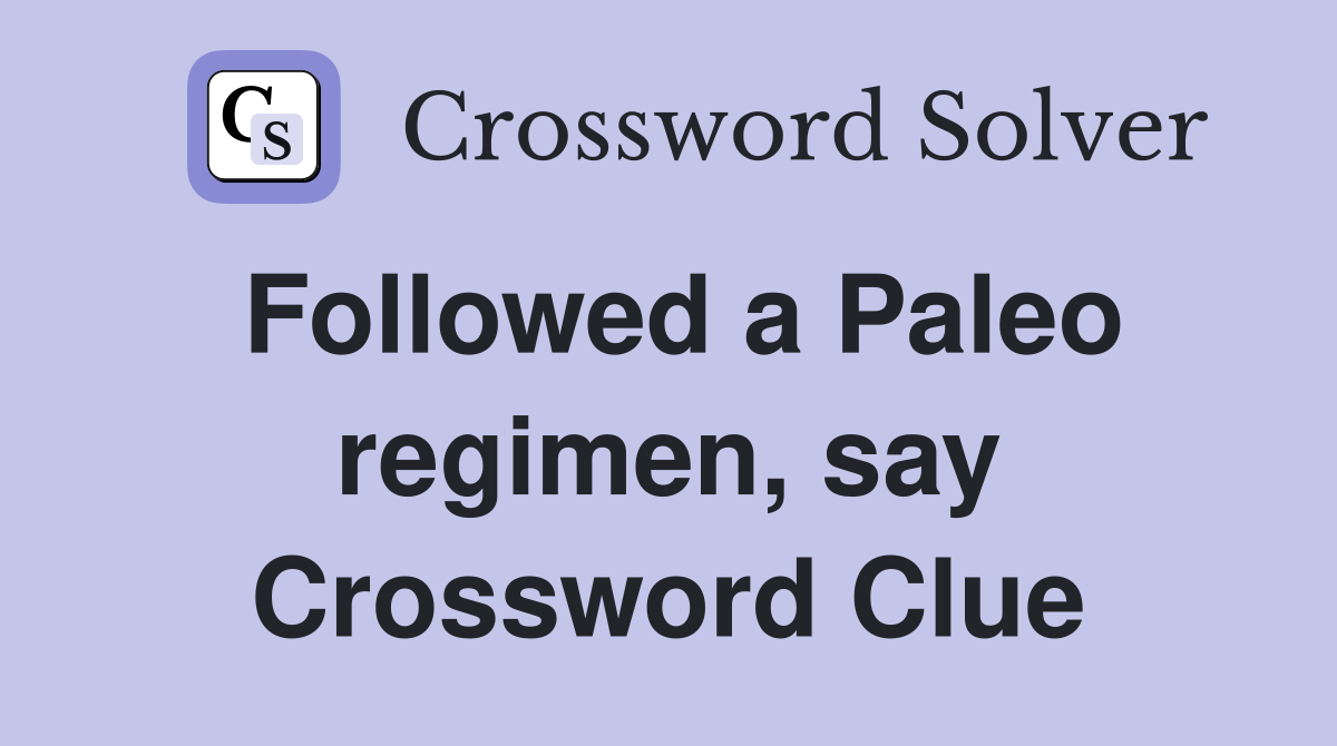 Followed a Paleo regimen say Crossword Clue Answers Crossword Solver
