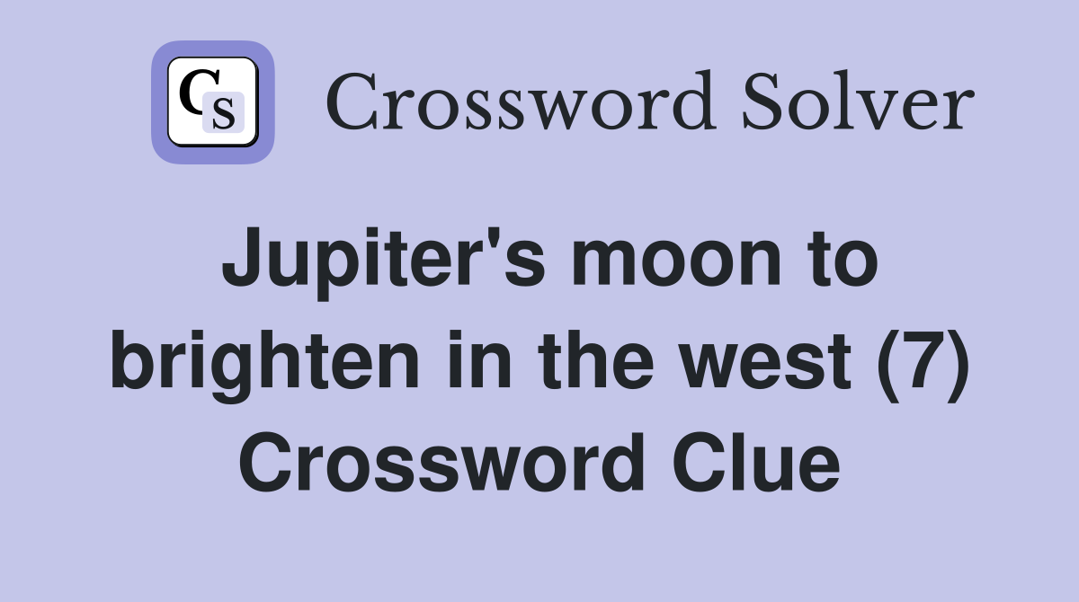 Jupiter #39 s moon to brighten in the west (7) Crossword Clue Answers