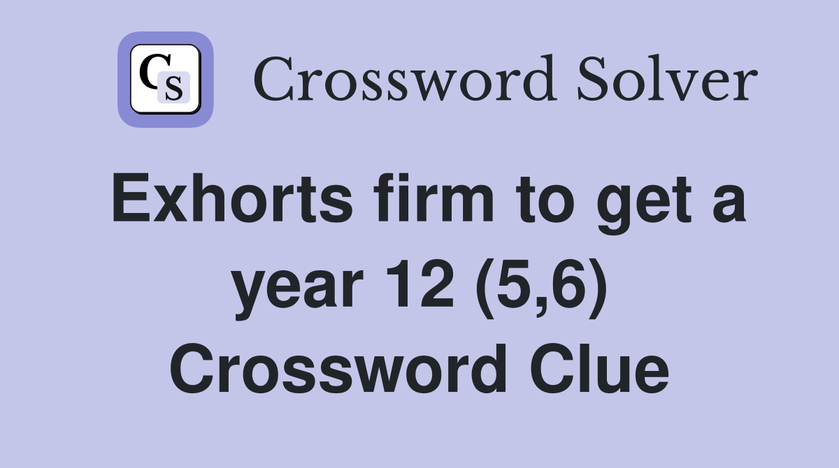Exhorts firm to get a year 12 (5 6) Crossword Clue Answers