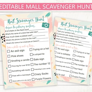 Editable Mall Scavenger Hunt // Instant Download PDF // Birthday Party